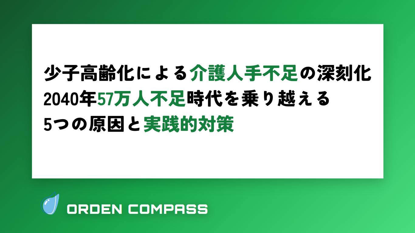 少子高齢化による介護人手不足は、2025年32万人、2040年57万人という深刻な状況に直面しています。原因は、需給バランスの崩壊、低賃金、身体的負担、人間関係、業務非効率という5つの構造的課題です。