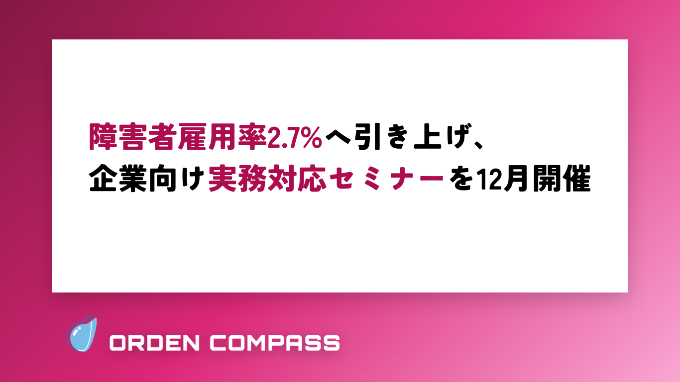 障害者雇用の法定雇用率が2026年7月に2.7%へ引き上げられることを受け、一般社団法人クレア人財育英協会が企業向けの実務対応セミナーを2025年12月24日に開催する。
