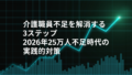 対策: 業務用と個人用端末を分け、パスワード設定・リモートロック機能・アクセス権限設定を導入時に必ず行います。個人情報保護法や介護保険法の規定を確認し、コンプライアンス要件を満たす運用ルールを策定します。