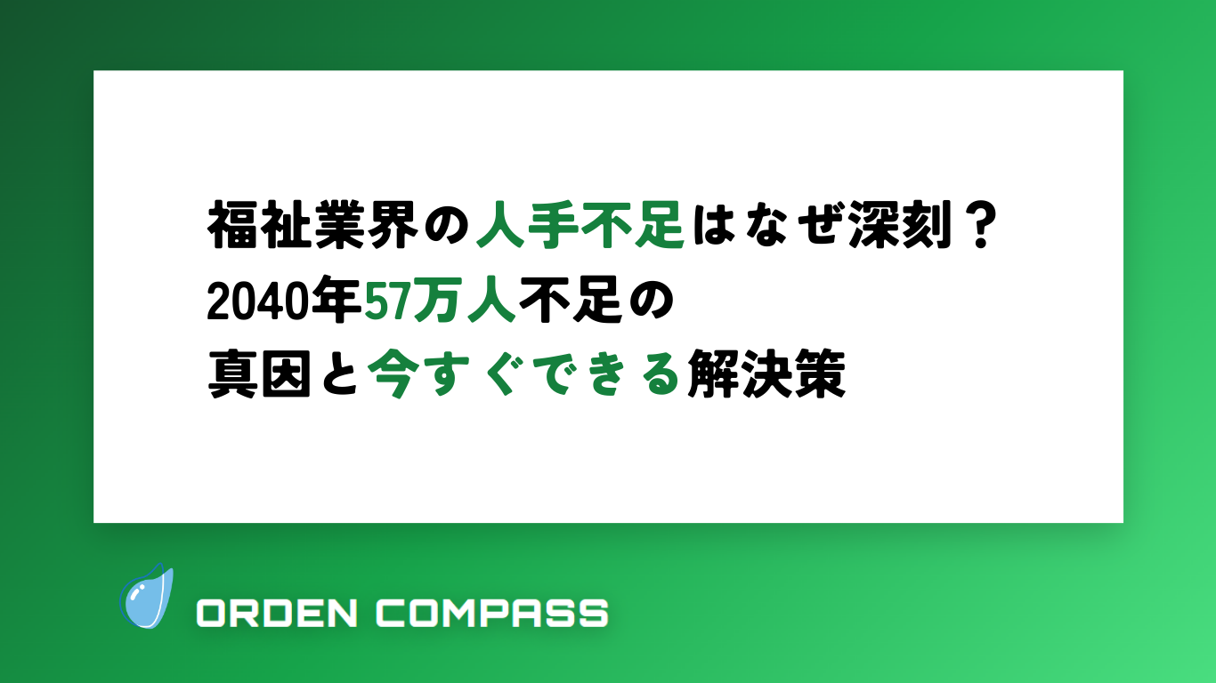 福祉業界の人手不足は、少子高齢化・賃金と負担のアンバランス・社会的評価の低さという3つの原因により2040年まで深刻化が続きます。しかし適切な対策を段階的に実施すれば解決可能です。