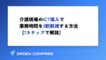 具体的には介護ソフトやチャット連絡、クラウドストレージなどを活用し、紙の書類作成や電話連絡に費やしていた時間を大幅に削減します。月間3日かかっていた実績入力作業が数分で完了する、電話連絡が1対1から1対多数に変わるなど、劇的な業務改善が可能になります。
