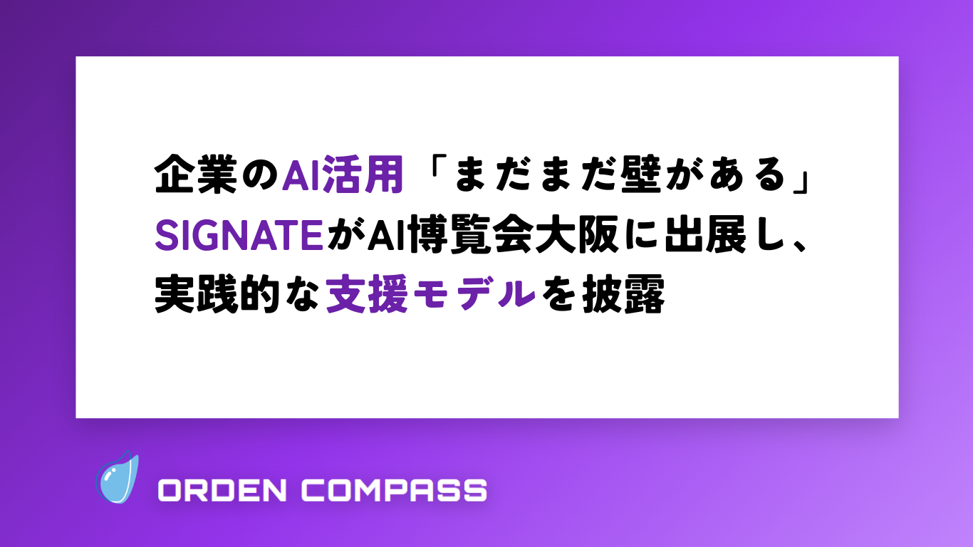 AI総合コンサルティングファームの株式会社SIGNATEは、2026年1月21日・22日に大阪で開催される「AI博覧会 大阪 2026」に出展し、自社が開発した生成AI活用の診断・育成ツールを公開する。同時にセミナーにも登壇し、企業が生成AI導入で直面しやすい課題と、その突破口について語る予定である。