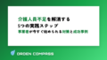 介護士不足の解決には、①採用活動の強化(攻め)、②既存職員の定着支援(守り)、③業務効率化による負担軽減、の3つを同時に進めることが不可欠です。