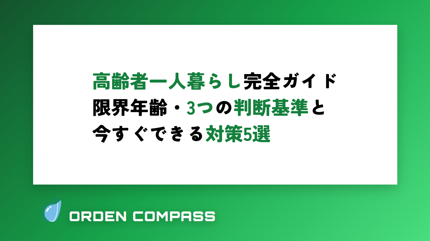 高齢者の一人暮らしは、3つの判断基準(健康寿命・生活自立度・社会的孤立度)で総合的に評価し、段階に応じた対策を講じることが重要です。