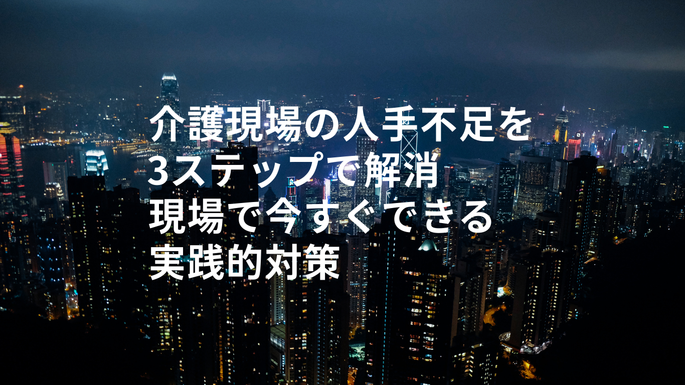 介護現場の人手不足は、2025年・2040年問題により今後さらに深刻化します。しかし今日からできる職場環境改善、1ヶ月以内の採用強化と待遇改善、3ヶ月以内の情報システム導入という3ステップで、現場レベルでも十分に対策が可能です。