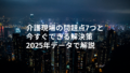 介護現場の課題は人材不足・業務過多・人間関係の3つが根幹ですが、その背後には介護保険制度の限界や社会的評価の低さという構造的問題が存在します。