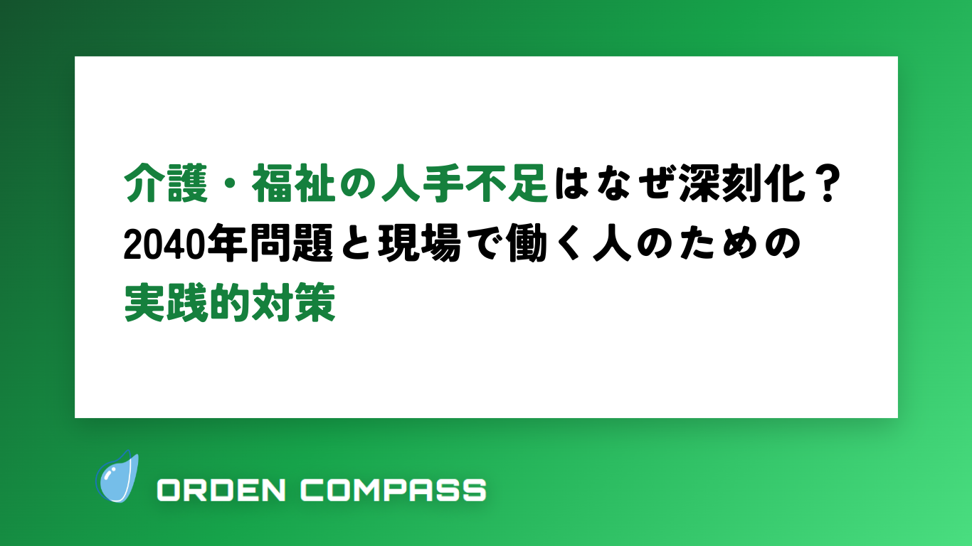 介護・福祉の人手不足は、2040年に57万人不足という深刻な状況です。少子高齢化、処遇、人間関係、身体的負担、社会的評価の5つが主な原因であり、構造的な問題として長期化が予想されます。