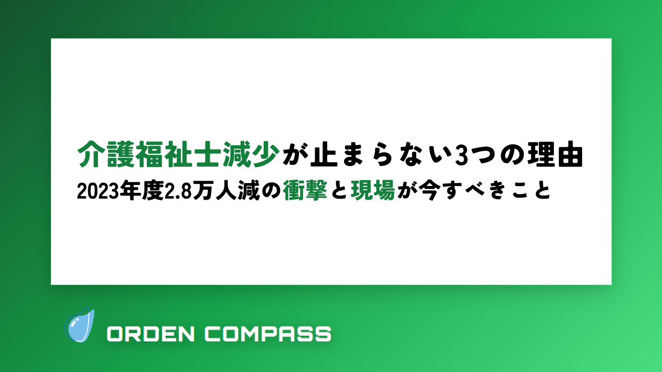 介護福祉士減少は、養成校の崩壊→新規資格者の激減→現場の人材枯渇という3段階の構造的問題です。この悪循環を断ち切るには、国レベルでの制度改革(試験の柔軟化、報酬の見直し)と、現場レベルでの職場環境改善の両方が必要です。
