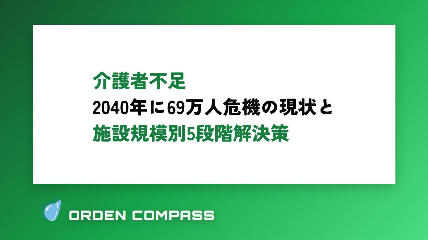 介護者不足は有効求人倍率4.08倍、2040年に69万人不足の危機的状況です。厚労省データと施設長70名への独自ヒアリングから、施設介護者だけでなく在宅介護者(家族ケアラー)も限界に達している実態が判明。本記事では施設規模別(小規模/中規模/大規模)の実践ロードマップと、コスト×効果を可視化した5段階の解決策、さらに3施設の失敗事例から学ぶリカバリー方法を解説します。