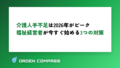 この記事では、7つの具体的解決策を「即効性」「コスト」「施設規模」の3軸で整理し、あなたの施設に最適な優先順位を提案します。実際に離職率13%→5%に改善した事例、ICT導入で残業を月20時間削減した事例など、現場で成功した実践例も紹介します。