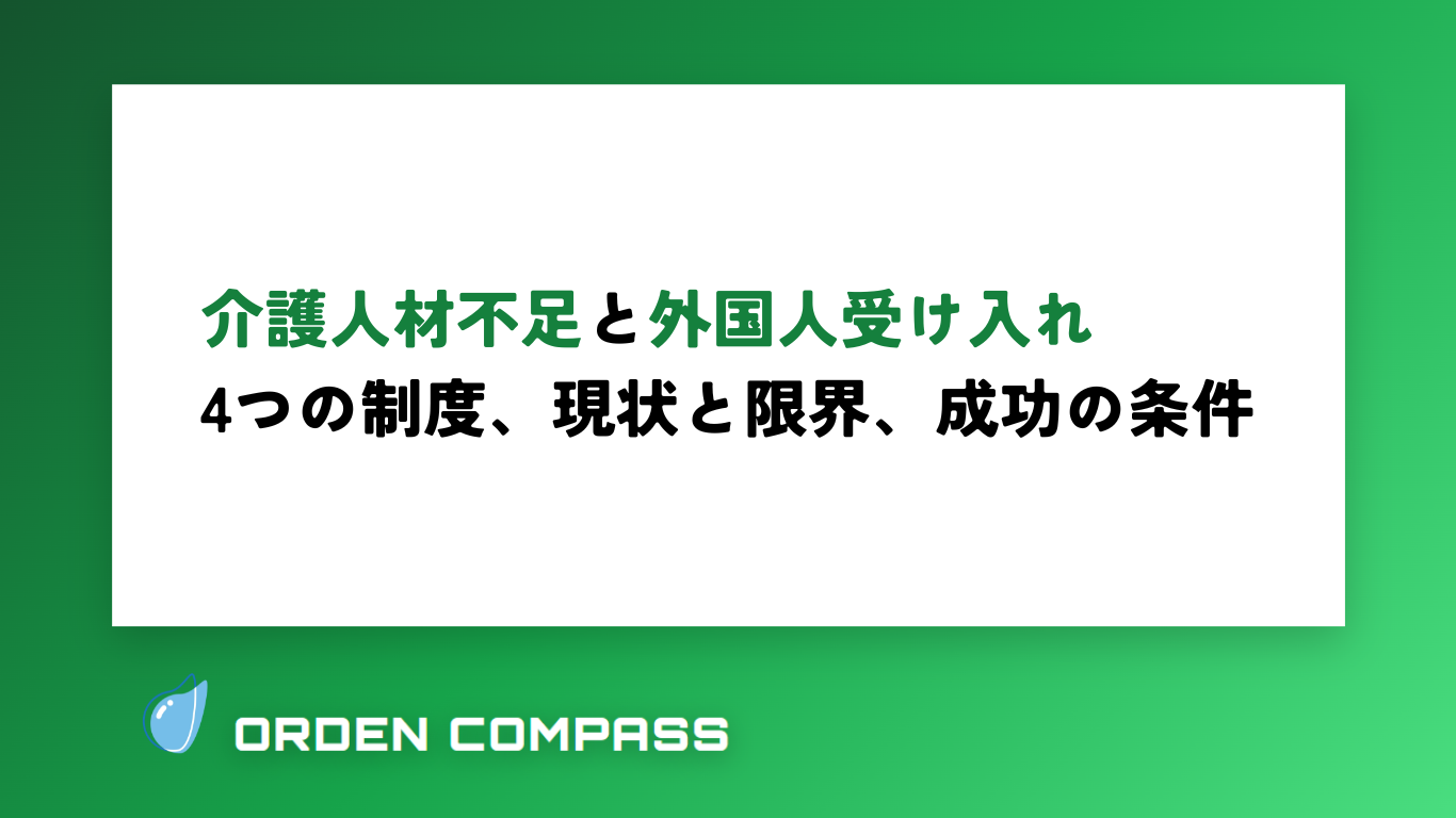 本記事では、外国人介護人材受け入れの4つの制度、現在の進捗、成功と失敗の分岐点を詳しく解説し、外国人材をどう活用すべきかについて、現実的な戦略を示します。