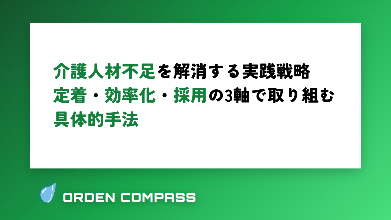介護人材不足の解消には、単一の施策では不十分です。必要なのは「定着率向上」「業務効率化」「多様な採用」という3つの軸を同時に進めることです。